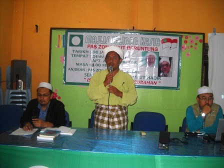 Bukit Beruntung 8 Januari - "Eratkan Ukhwah, Gerakkan Usaha," itulah kesimpulan yang dapat dibuat daripada Majlis 'Jalinan Kasih' PAS Zon Bukit Beruntung yang diadakan di Dewan Apartment Anggerik, Taman Bunga Raya disini malam ini. Majlis yang dijangka akan mengumpul lebih kurang 100 ahli bagaimanapun diluar jangkaan apabila lebih 250 ahli dan keluarga masing-masing hadir di majlis berkenaan.